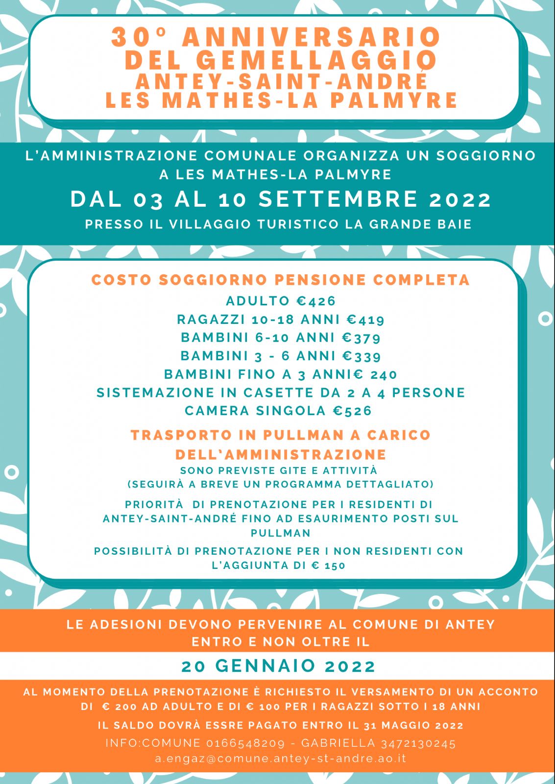 Le adesioni devono pervenire al Comune di Antey-Saint-André