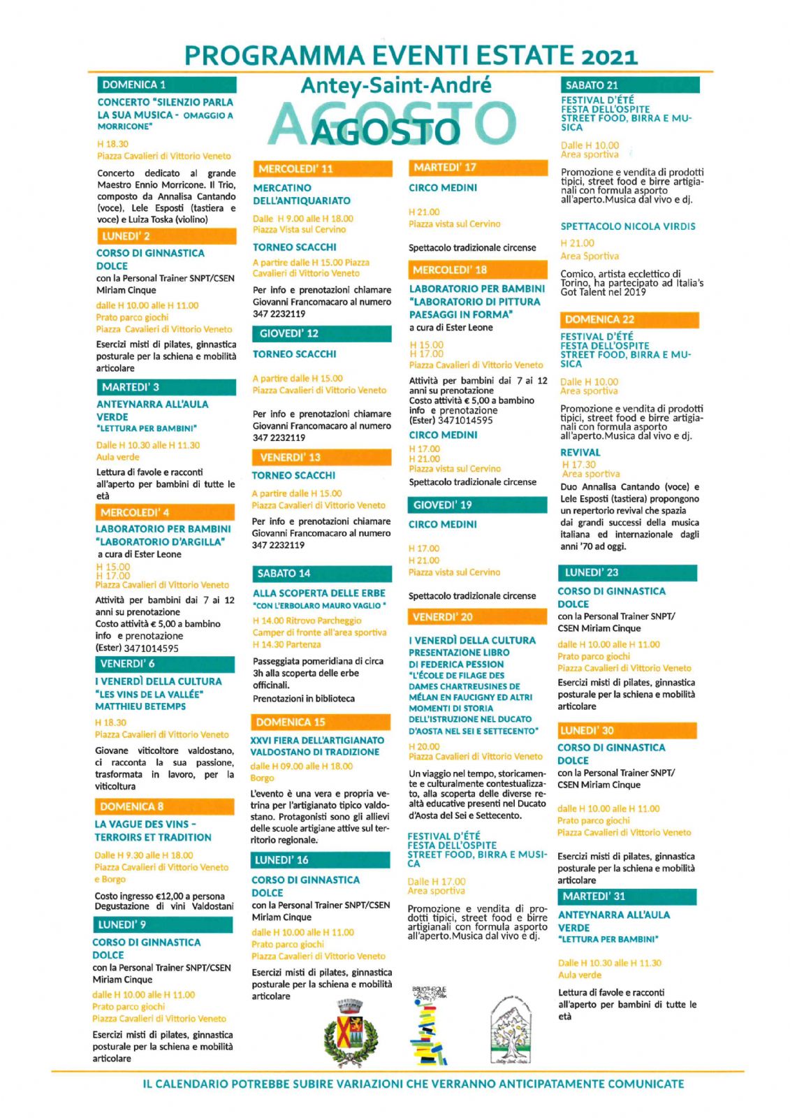 EVENTI MESE DI AGOSTO