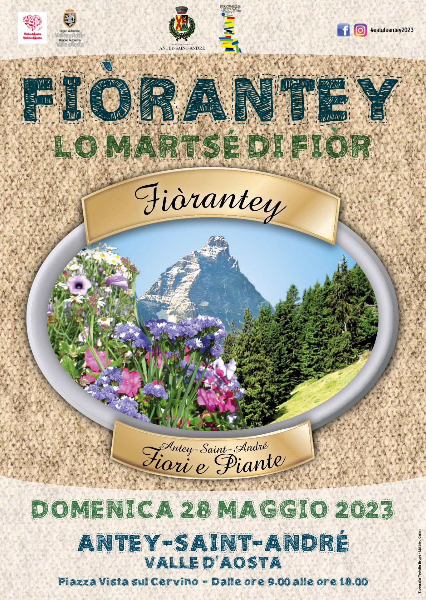 L’ultima domenica di maggio Antey-St-André ospita Fiòrantey, lo martsé di Fiòr. In questo giorno la piazza Vista del Cervino si riempirà di fiori, piante, colori, profumi, forme: un insieme di sensazioni uniche.