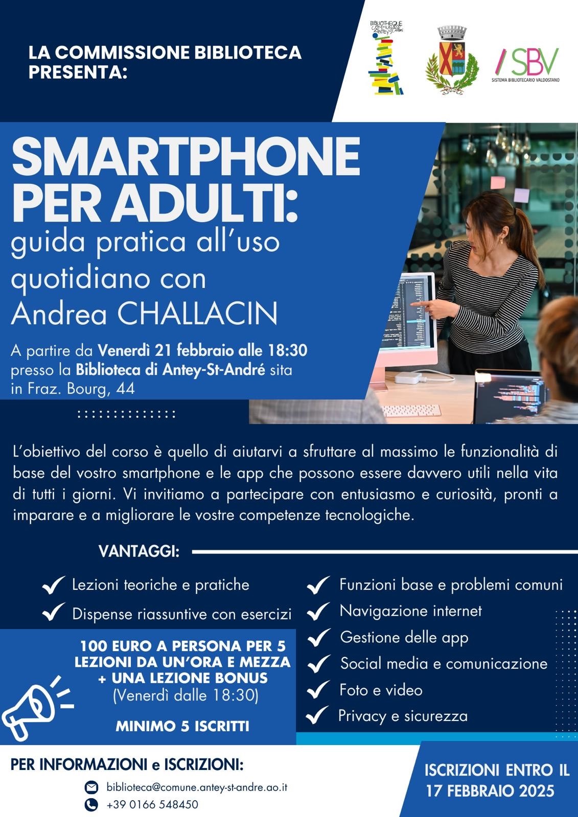 Corso di apprendimento per adulti mirato all'utilizzo dello smartphone.