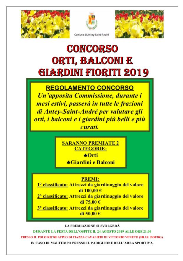 CONCORSO ORTI, BALCONI E GIARDINI FIORITI 2019