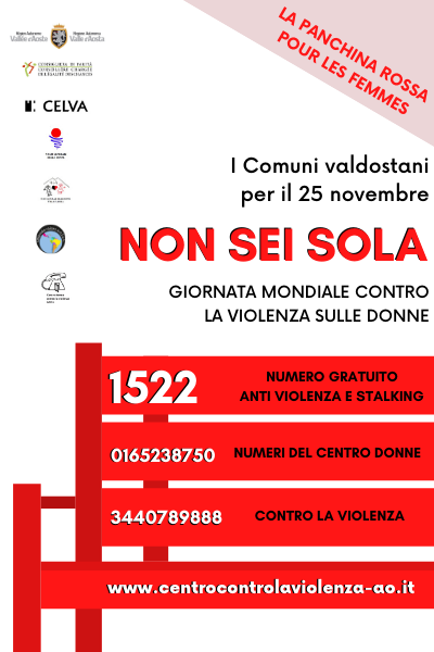 Il Celva e gli enti locali aderiscono alla campagna di sensibilizzazione per le celebrazioni della Giornata internazionale contro la violenza sulle donne, che ricorre ogni anno il 25 novembre.