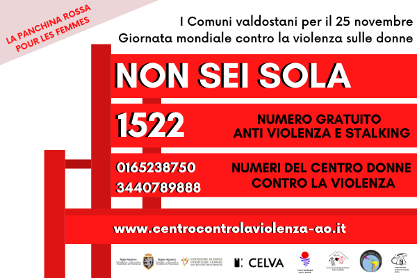 Il Celva e gli enti locali aderiscono alla campagna di sensibilizzazione per le celebrazioni della Giornata internazionale contro la violenza sulle donne, che ricorre ogni anno il 25 novembre.