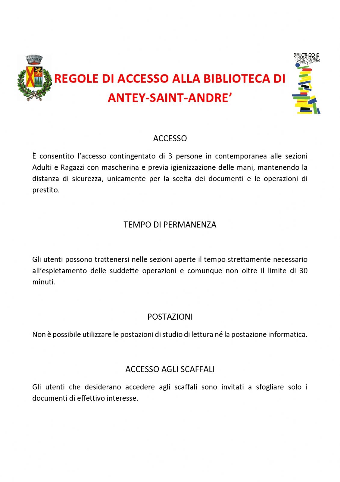REGOLE DI ACCESSO ALLA BIBLIOTECA COMUNALE